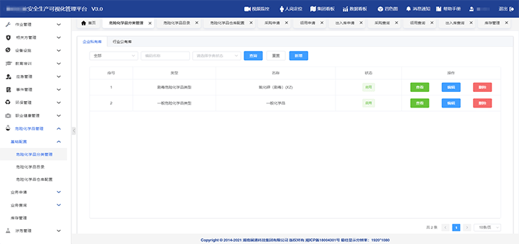 實(shí)現(xiàn)危險化學(xué)品分類管理,構(gòu)建危險化學(xué)品目錄,支持危險化學(xué)品采購、領(lǐng)用、及出入庫線上流程審批及記錄查詢,隨時把控相應(yīng)危險化學(xué)品庫存情況。