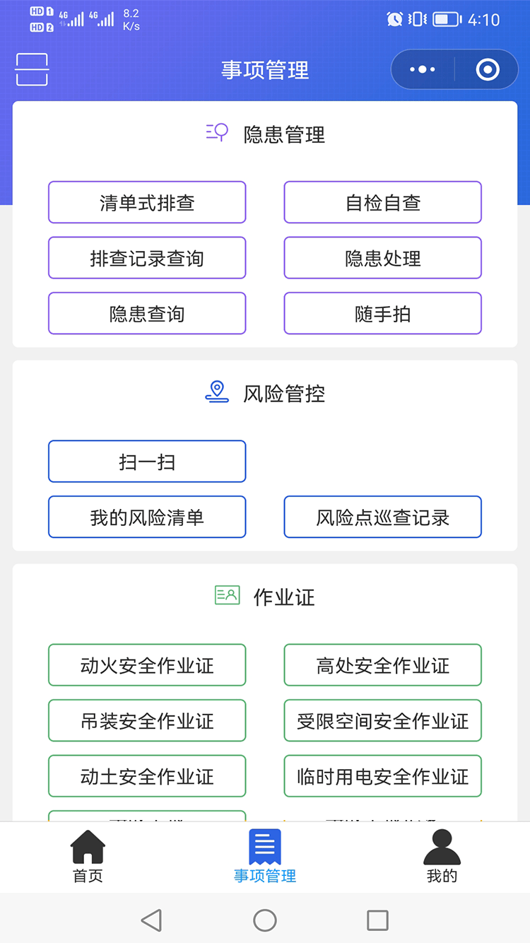 配置相應(yīng)預(yù)警規(guī)則,可實(shí)現(xiàn)隱患整改/復(fù)查、隨手拍審核、風(fēng)險巡查、證照審核、證件預(yù)過期、特殊作業(yè)流程審批、演練計劃、應(yīng)急值守等各類工作事項(xiàng)預(yù)警,及時推送至相關(guān)負(fù)責(zé)人,提醒其進(jìn)行工作處理。